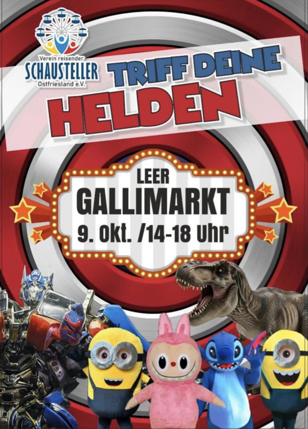 Seit mittlerweile 17 Jahren halten wir den Gallimarkt und alles was mit ihm zu tun hat für unsere Seite fest. Wir möchten uns auf diesem Weg bei allen Verantwortlichen der Stadt Leer, besonders bei Marktmeister Michael Meyer und dem Verein reisender Schausteller Ostfriesland e. V. , sowie allen Schaustellern des Gallimarktes bedanken, die uns mit Informationen und Wissenswertes versorgen, damit wir auf unserer privat betriebenen Seite alles Wichtige für Euch zusammentragen können. Auch möchten wir uns bei euch, den Besuchern unserer Seite, bedanken. Wir freuen uns bereits jetzt auf den Gallimarkt 2026.