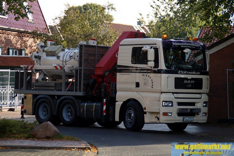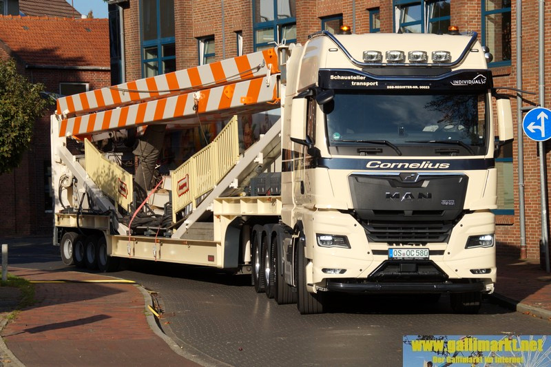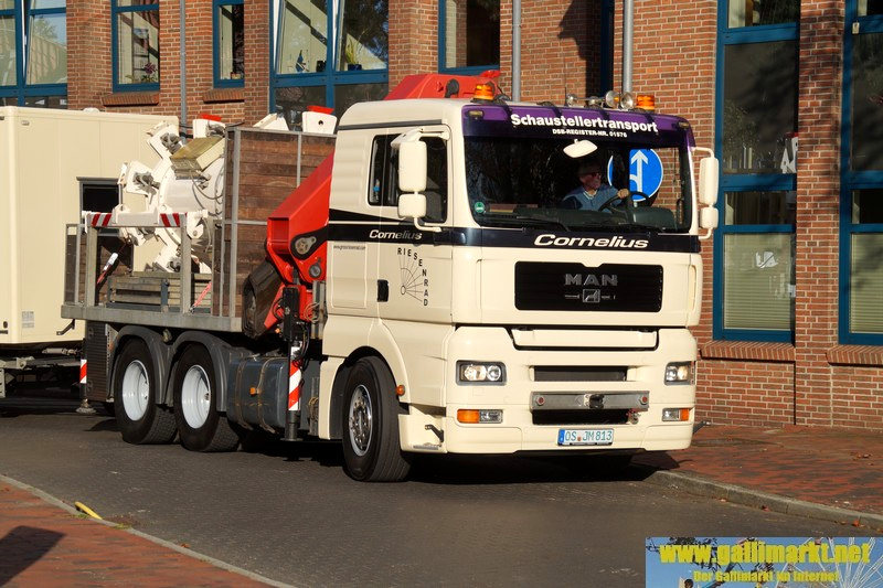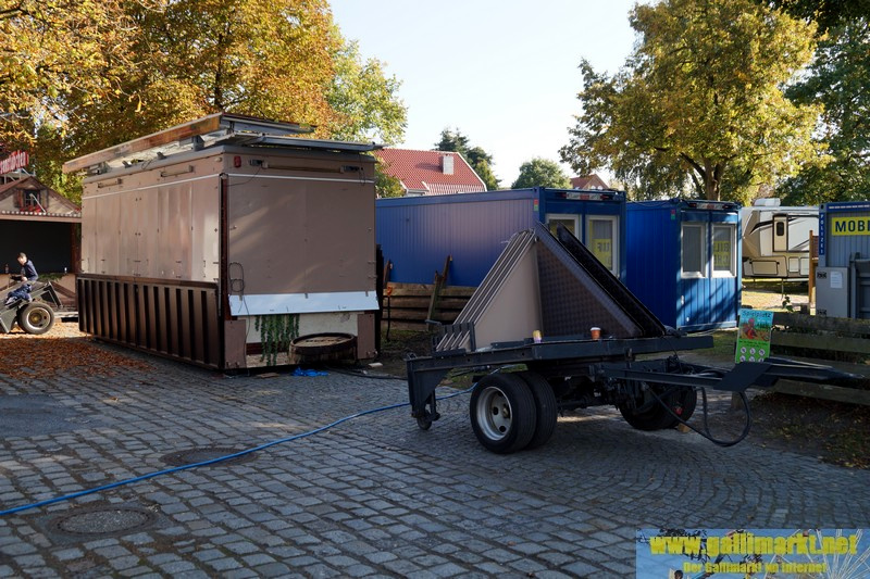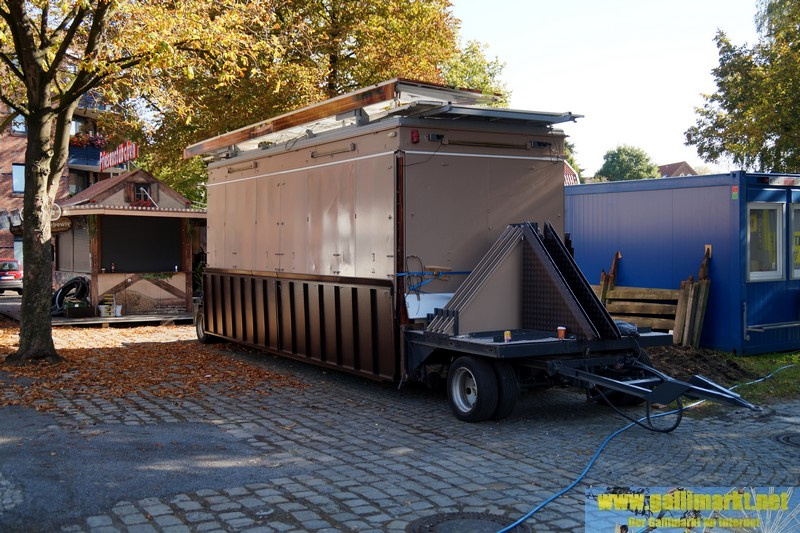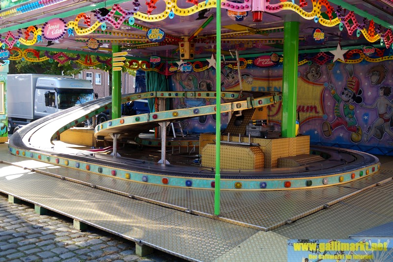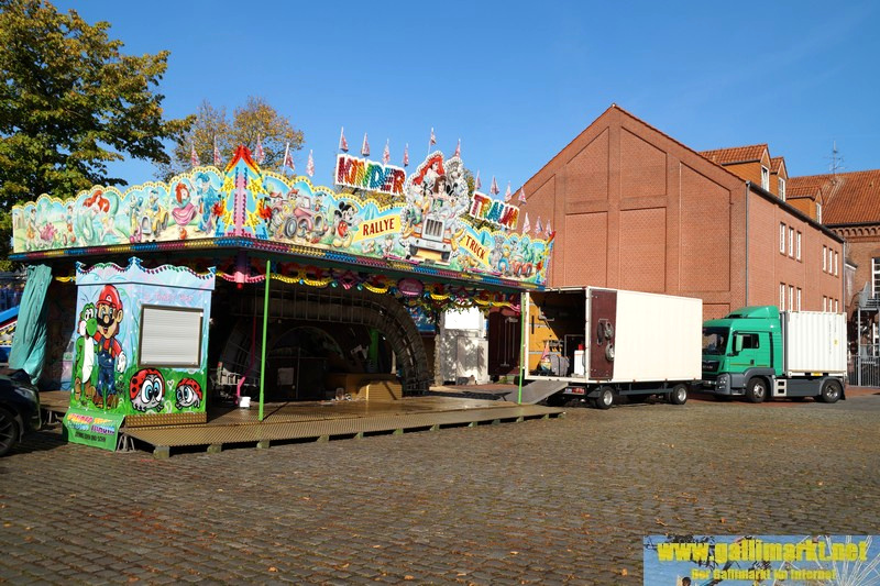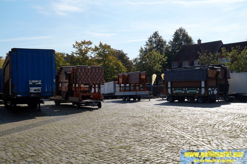 Heute war es wieder sehr ruhig auf dem Platz. Morgen wird es schon etwas hektischer, denn schon früh morgens werden die Schmiede- und die Garrelsstraße gesperrt, am Abend alle anderen Straßen rund um den Gallimarkt. Die ersten Geschäfte, die dort aufbauen, wurden heute bereits auf der Großen Bleiche abgestellt. Zudem ging bei „X Flight“ der Aufbau weiter und am Nachmittag trafen die ersten Transporte des Riesenrades ein.